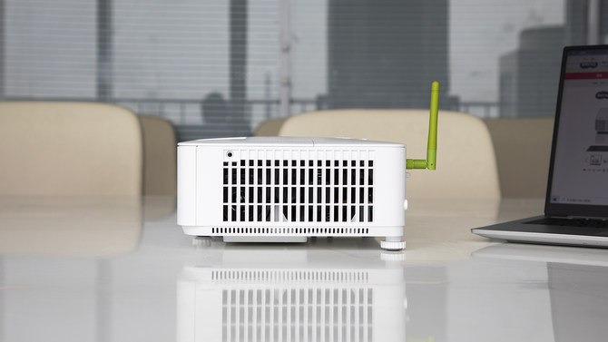 如果散热做不好,很可能直接导致投影机操作卡顿,甚至投放画面掉帧。在明基E582投影机上,可以明显看到侧面进出风的栅格开得非常大,而且在前面板处也有出风栅格,保证了明基E582的散热效果,并充分考虑到了使用者的感受。