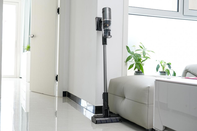 另外MOMA还提供了立式的智能收纳充电站,免打孔的设计,安装简便,同时背面预留的充电孔位,还能为吸尘器进行进行充电和收纳。