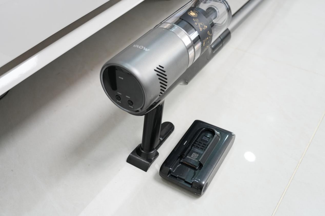 基本上40分钟的时间,完全足够我们打扫一个80-100平米的全屋清洁,并且这款吸尘器还采用了可拆卸的模块化电池设计,用户可以额外购置一块电池,无需等待充满电再继续打扫,实现续航翻倍。
