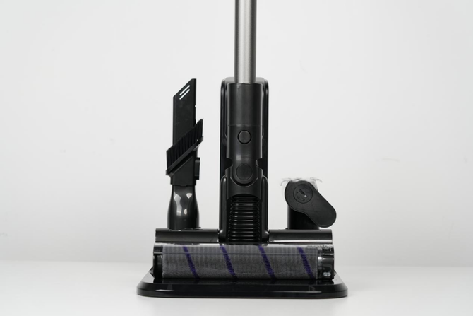 外观方面整个吸尘器采用了银灰色的设计,质感非常优秀,完全是轻奢高端的路线,颜值非常能打。