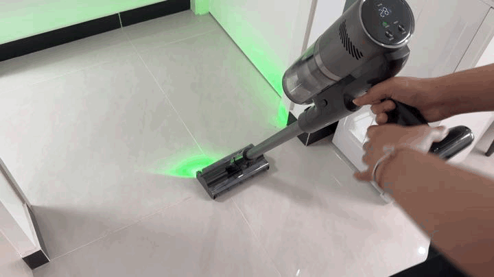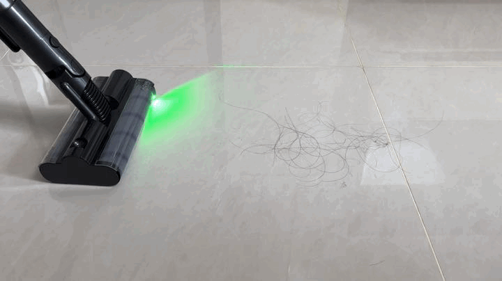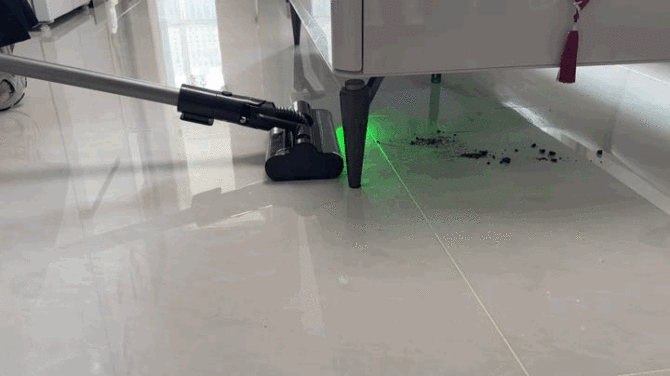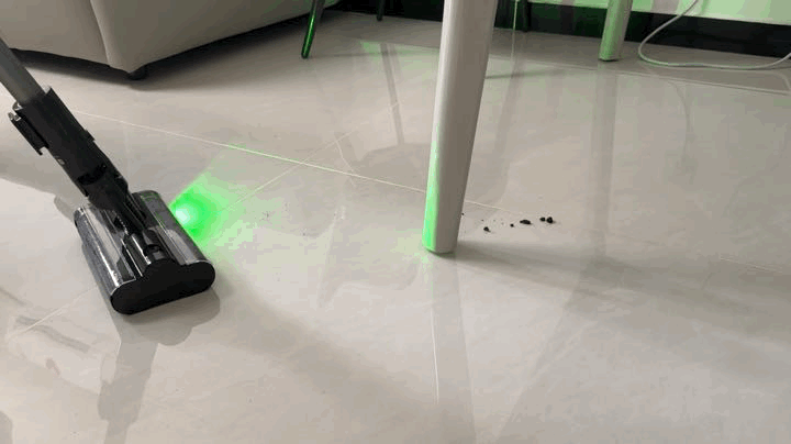MOVA蜻蜓吸尘器还在吸尘机滚刷的前面设计了140度超广角的绿光显尘技术,对比某森v8、v10都未配备该功能,这样能够让我们更清晰地看到尘土、毛发等物品,一次完成清洁,对于宠物党和居家用户来讲,完全是必备的配置。