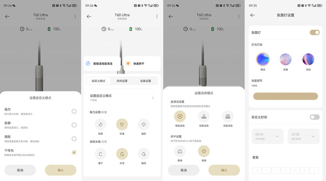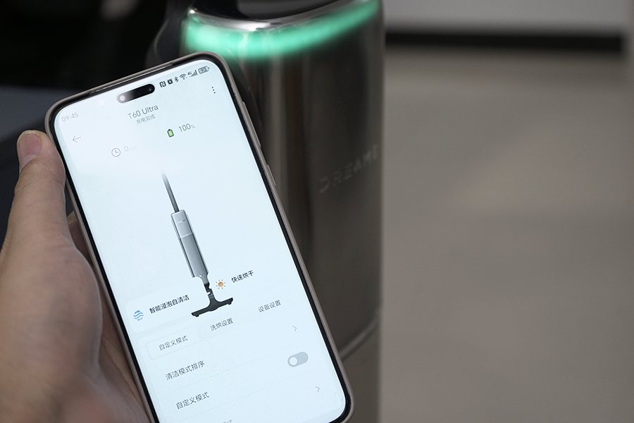 另外,智能化是现在家电产品不可忽略的部分,追觅T60 Ultra同样支持APP控制,通过扫码连接之后,我们可以在APP上自定义清洁模式、洗烘模式以及氛围灯的效果和亮度。
