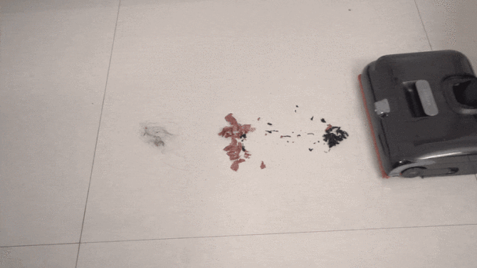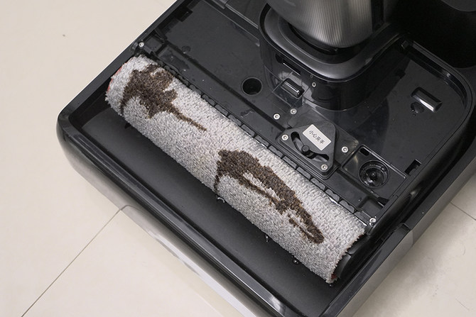我们将红烧酱油、食用油等倒在滚刷上,启动自清洁模式,5分钟时间后,滚刷清洁如新,如果不是还有些许潮湿,真的会以为没有被淋过油污。