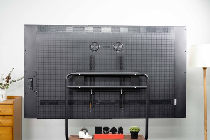 背部整体设计规整,接口区域布局清晰,理线空间充足,无论是壁挂还是座放,都能保持比较干净的视觉效果。从设计取向来看,Q9M 并没有刻意追求激进或夸张,而是更强调耐看与融入客厅环境的能力。
