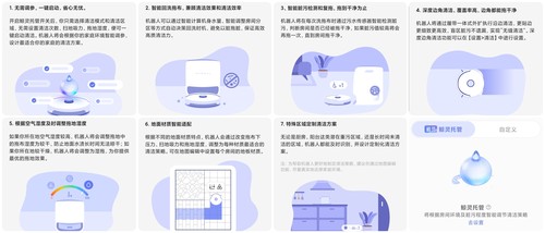 每种模式都可以自定义【清洁次数】、【扫地吸力】的强度、【拖地湿度】