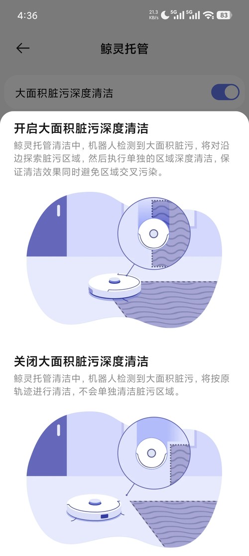 在打开鲸灵托管的大面积脏污深度清洁后,