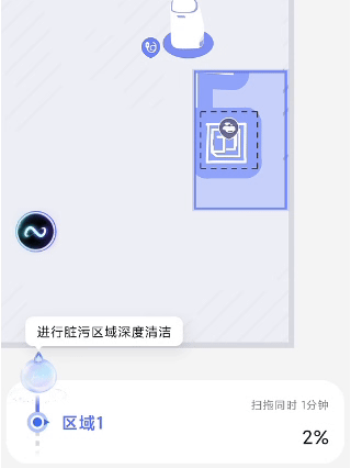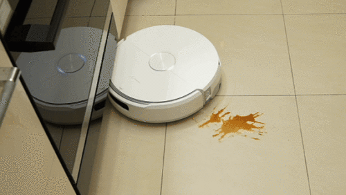 在识别到大面积固体颗粒物时,会减速并增加吸力,着重清理。