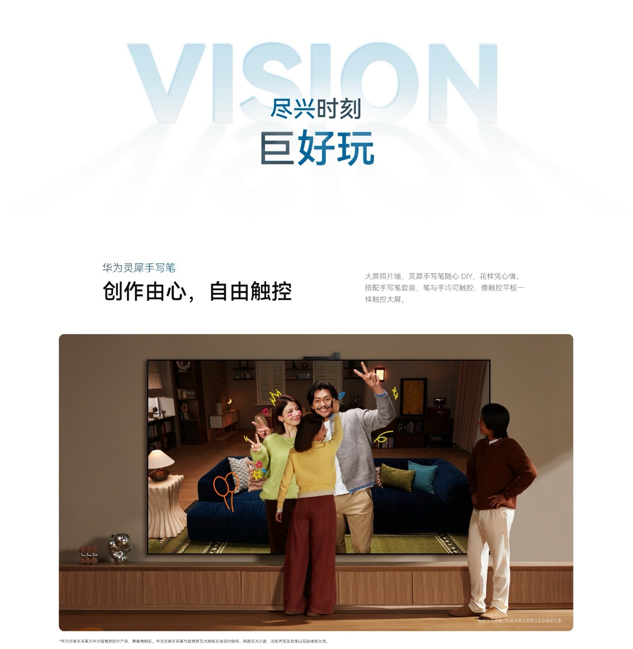 值得一提的是,华为Vision智慧屏 6首次支持了华为灵犀手写笔,适配星闪技术且搭配即插即用的感知模块,实现毫米级精准触控。这不仅为商务办公提供了文档批注功能,更为家庭亲子互动打开了新世界——孩子们可以在大屏上涂鸦创作,然后扫码保存,手和笔都能直接触控操作,让大屏从“看”的工具进化为“玩”的平台。