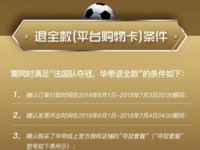 2018年7月15日,法国队以4:2的大比分战胜克罗地亚队,夺得第21届世界杯足球赛的冠军。曾经在世界杯赛前放出豪言“法国夺冠退全款”的华帝,通过微信官方公众号和官方微博表示,将兑现承诺,凡是6月1日0时至7月3日22时购买华帝“夺冠套餐”的消费者,将得到全额退款。